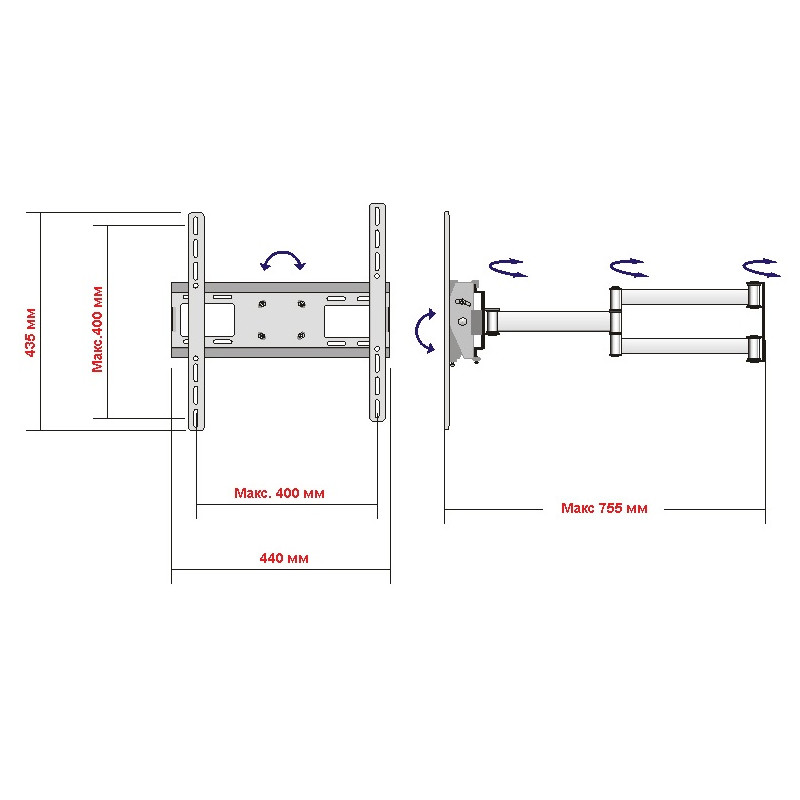 VESA: 400x400 мм, 400x300 мм, 400x200 мм, 300x300 мм, 200x300 мм, 200x200 мм