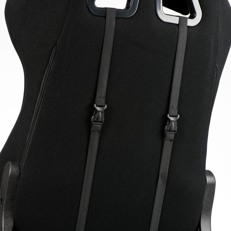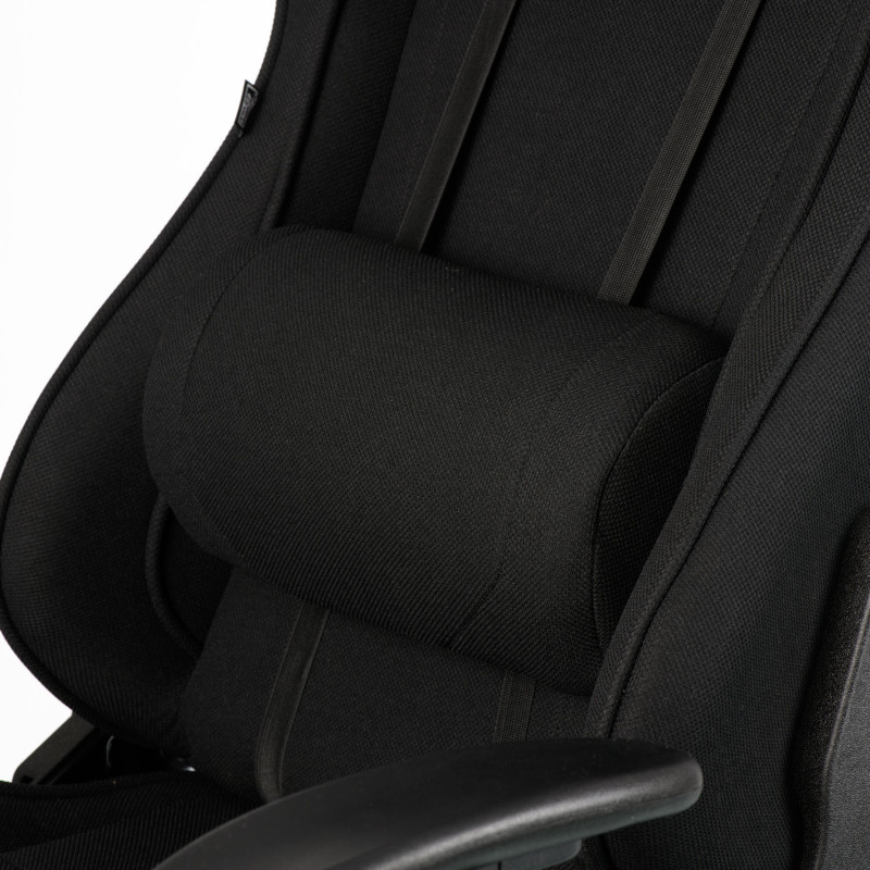В комплекте с креслом идут поясничный валик и подушка-подголовник. Обе подушки имеют анатомическую форму и крепятся при помощи специальных ремешков