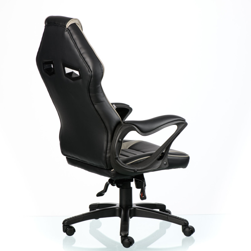 Подлокотники: нерегулируемые, материал- усиленный полипропилен, цвет - черный, обивка - мягкая арткожа серого цвета.