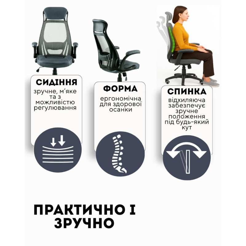 Кресло из сетчатой ткани – это конечно же естественная вентиляция, которая позволит чувствовать себя в кресле удобно при любой температуре в помещении.