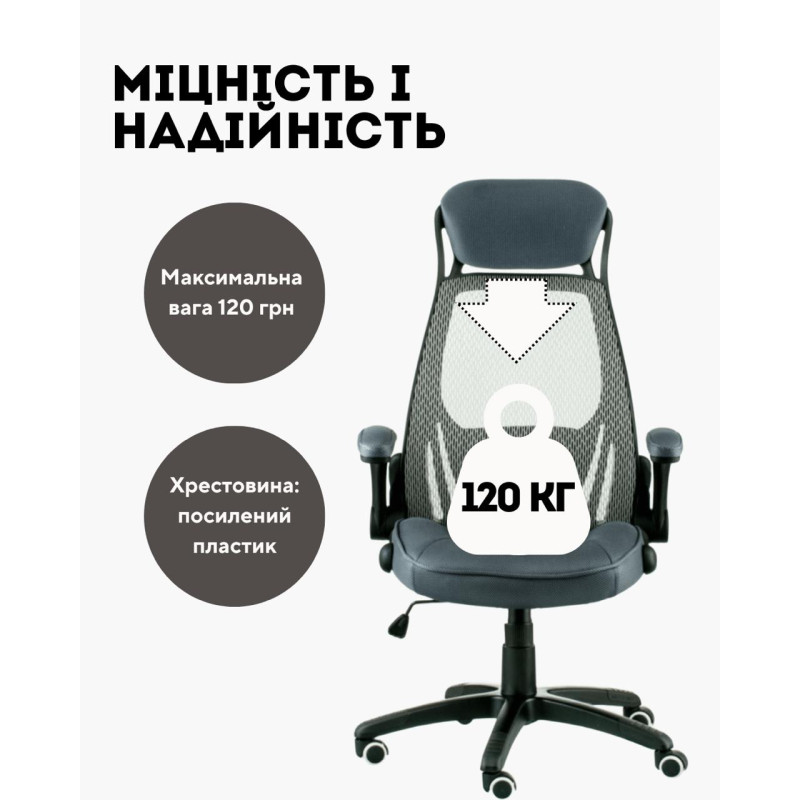 Материал покрытия: спинка - текстилайн, сиденье и подголовник (PP) - полипропилен - серного цвета