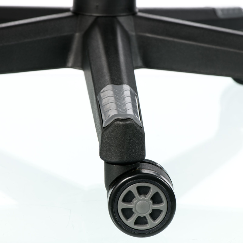 Крестовина: усиленный пластик, цвет черный c серыми вставками, 350 мм, прорезиненные колеса.