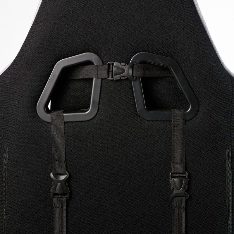 В комплекте с креслом идут поясничный валик и подушка-подголовник. Обе подушки имеют анатомическую форму и крепятся при помощи специальных ремешков