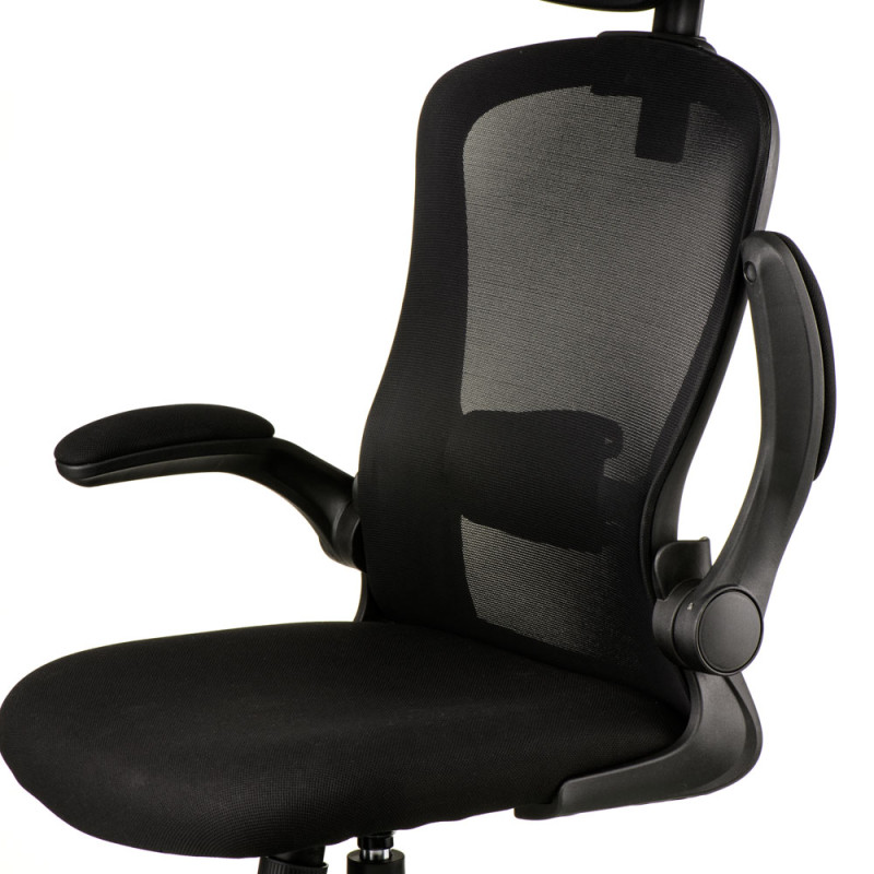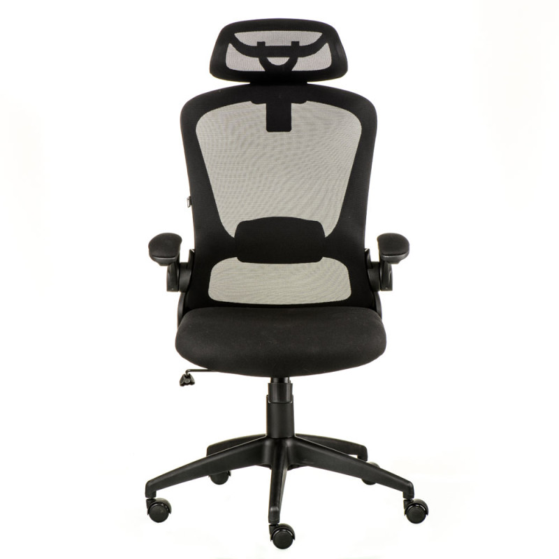 Материал покрытия: спинка и подголовник - сетка текстилай, сидение мебельная ткань - черного цвета