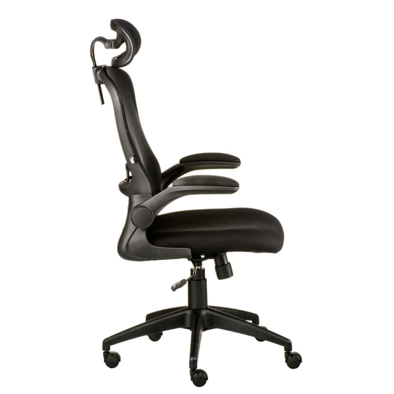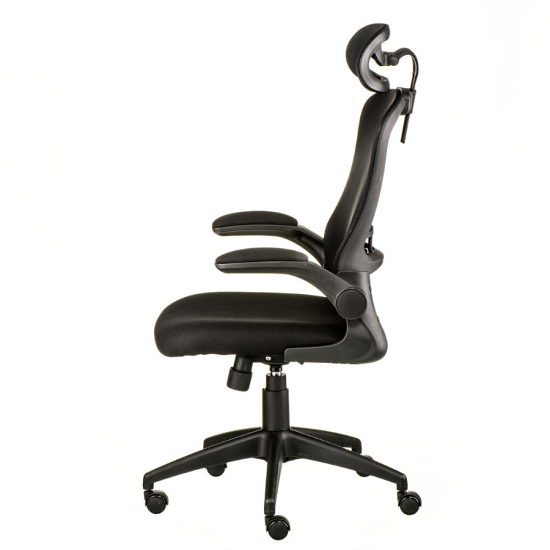 Подлокотники: регулируемый (поднимается и опускается), материал: черный пластик с обивкой мебельная ткань - черного цвета