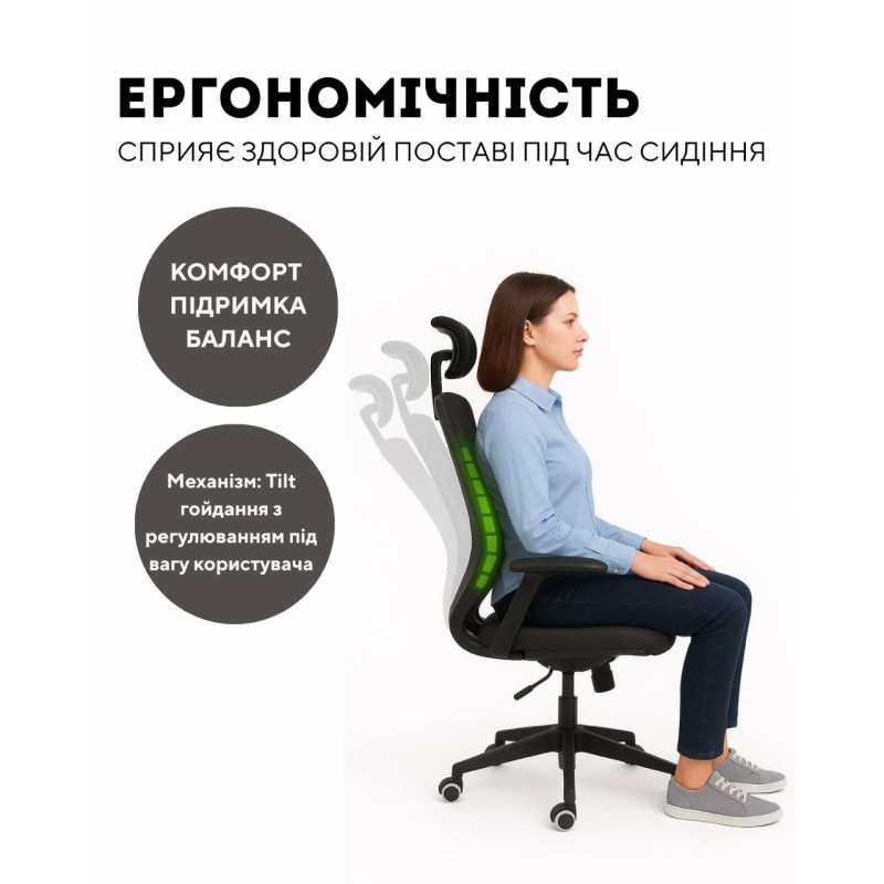 Механізм: Tilt гойдання з регулюванням під вага користувача