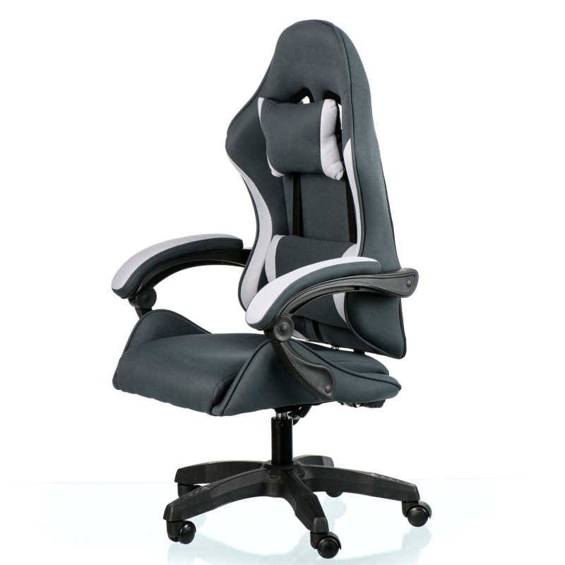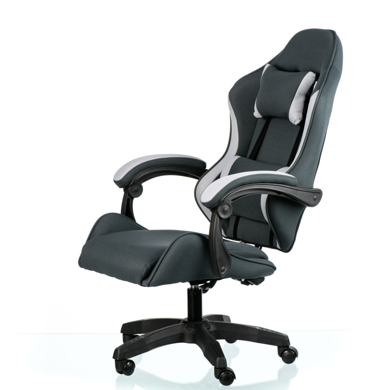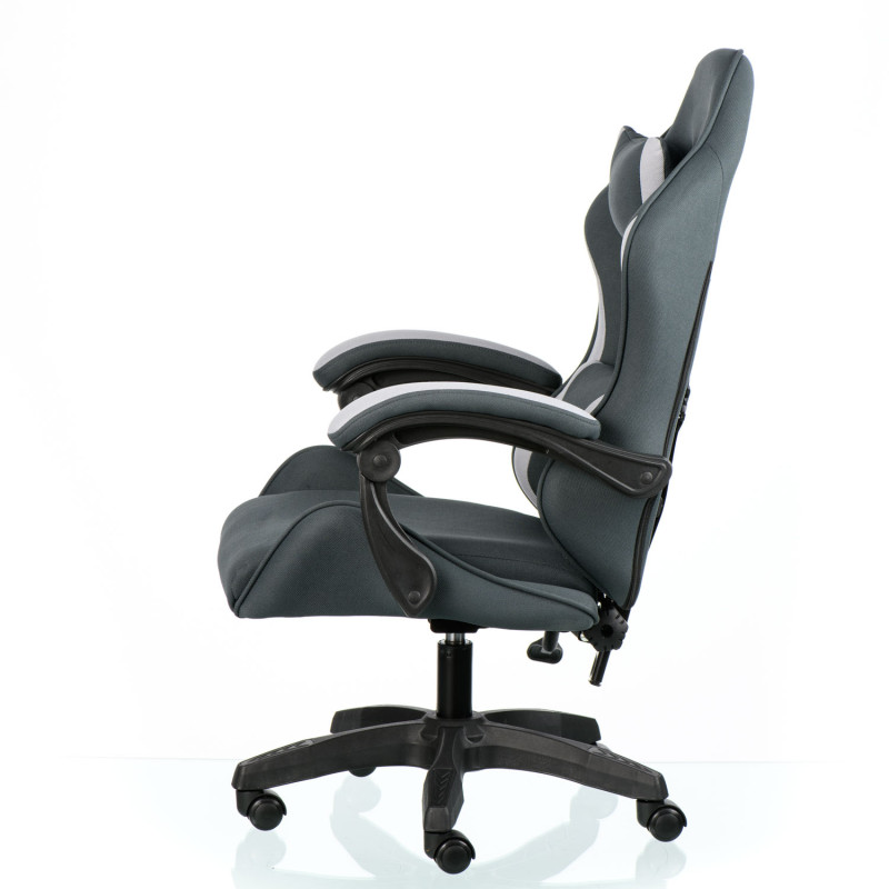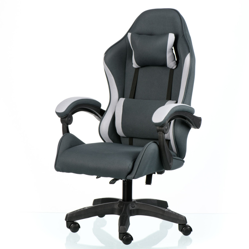 Ергономічне геймерське крісло у стильному чорно-сірому дизайні створене для максимального комфорту під час роботи та ігор.