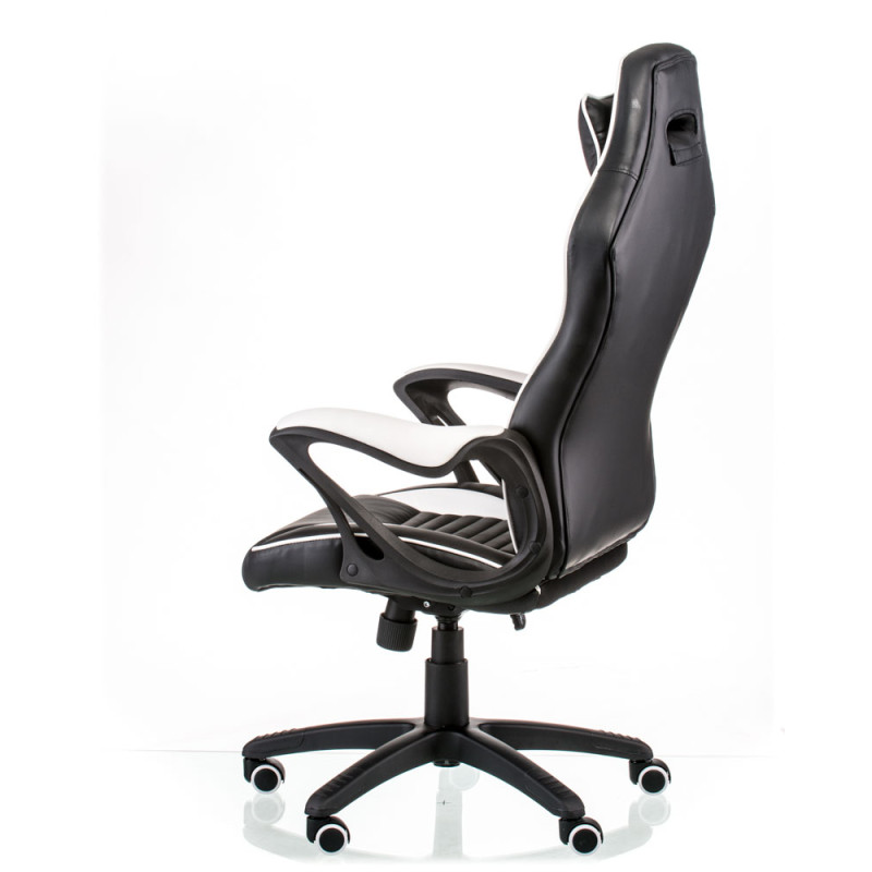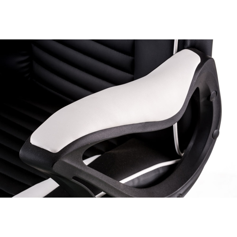 Підлокітники: нерегульовані, матеріал-пластик, колір – чорний, оббивка – м'яка артшкіра білого кольору.