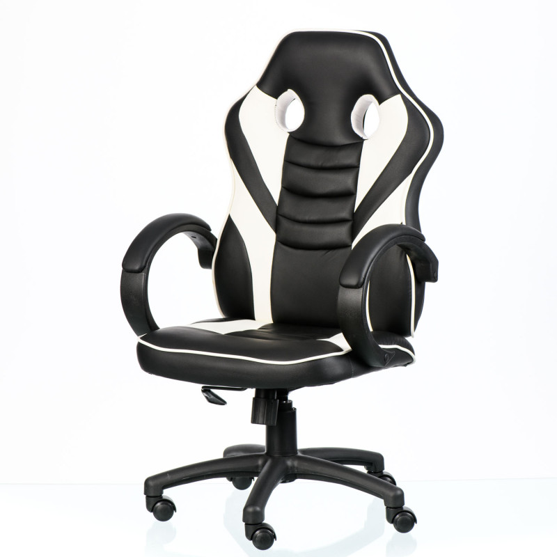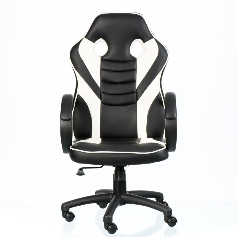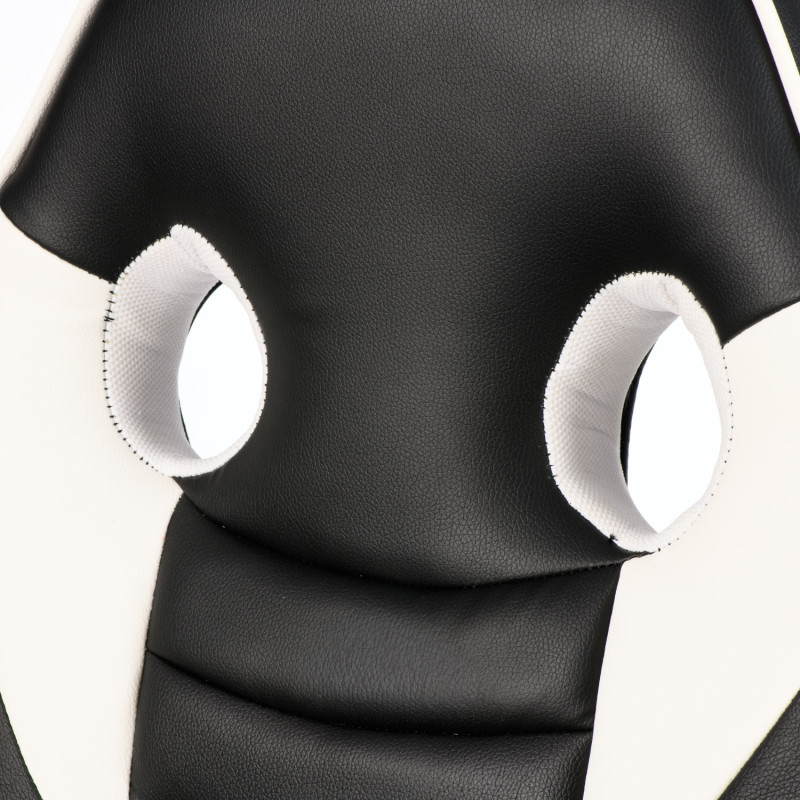 Елегантне чорно-біле виконання. Оббивка з чорної екошкіри на сидінні та спинці з контрастними вставками з білої екошкіри підкреслює сучасний геймерський стиль.