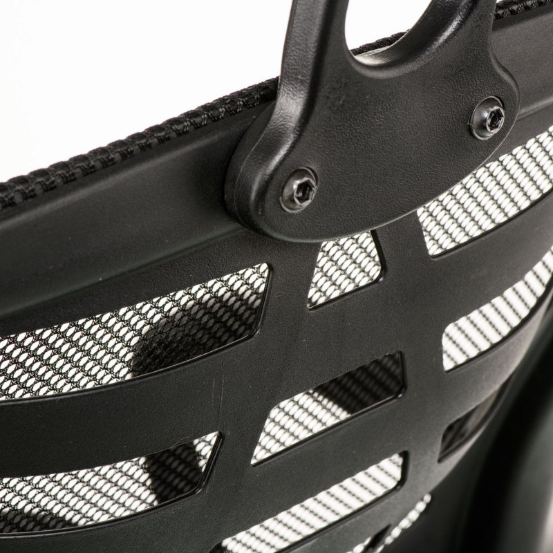 - Матеріал покриття: спинка — сітка (76% еластомера / 24% поліестеру з високою міцністю на розтягнення сітки). Сидіння (PP) — поліпропілен.
