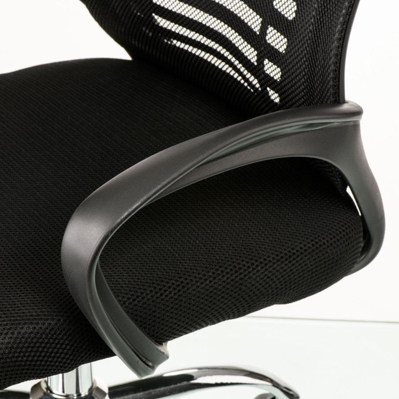 - Підлокітники: нерегульовані, матеріал — пластик, колір — чорний