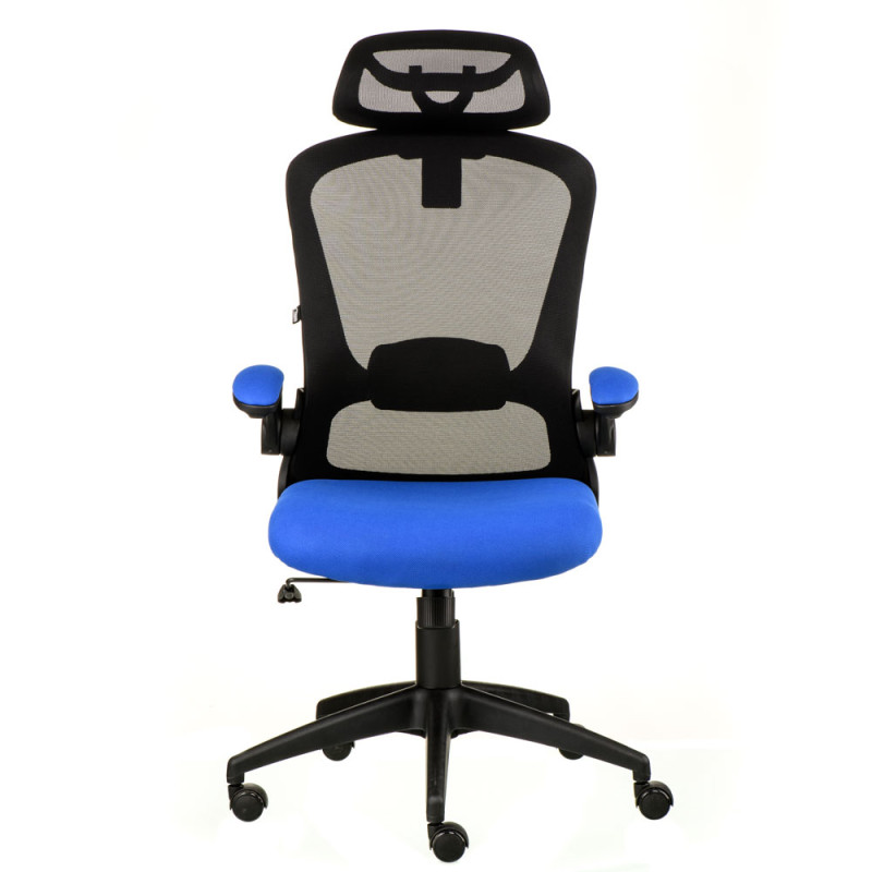 Матеріал покриття: спинка та підголовник - сітка текстила, сидіння меблева тканина - блакитного кольору