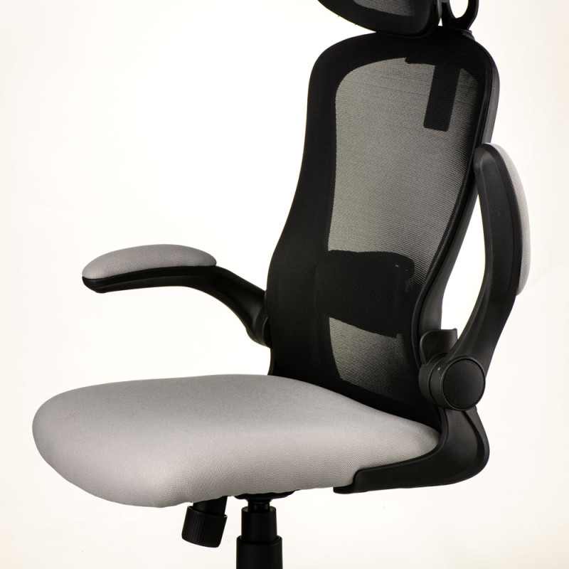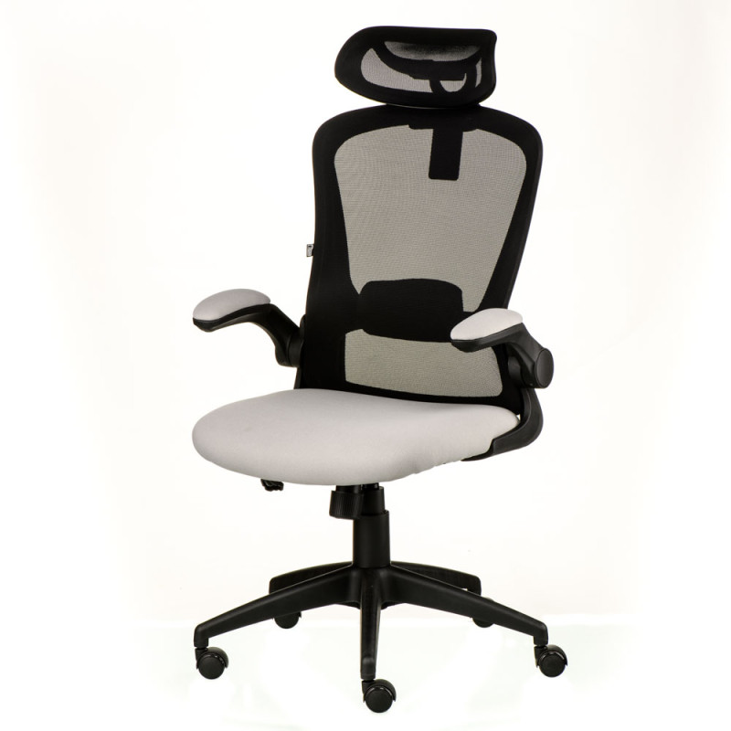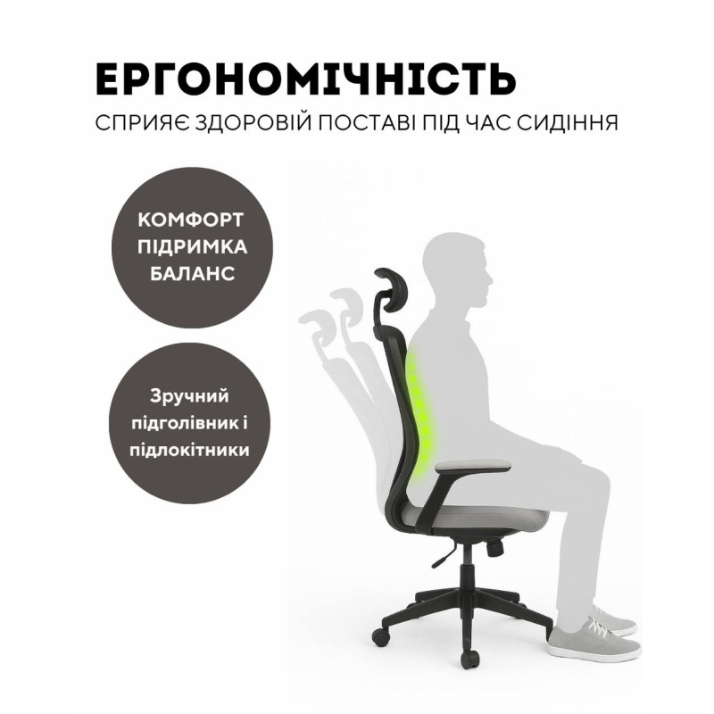 Матеріал покриття: спинка та підголовник - сітка текстила, сидіння меблева тканина - блакитного кольору